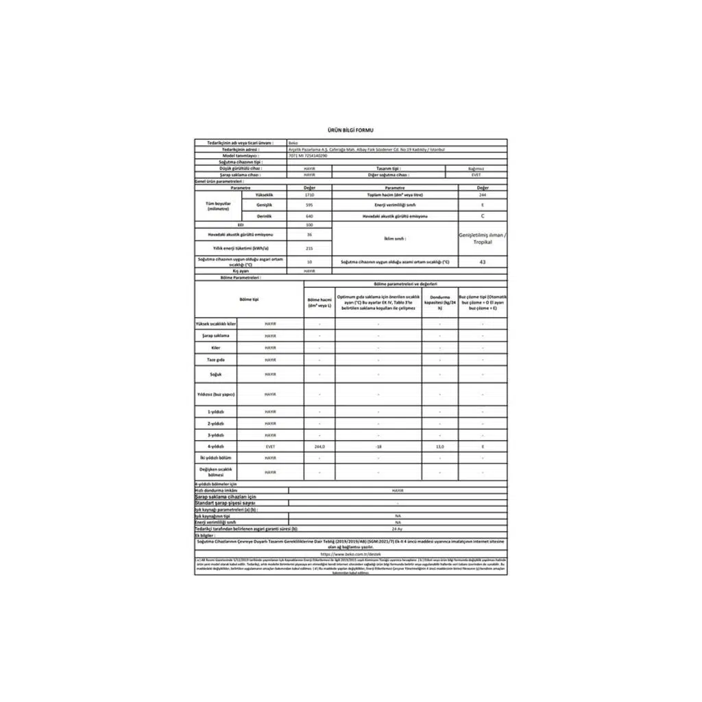 Beko BK 7071 MI 244 LT 7 Çekmeceli Dikey Derin Dondurucu